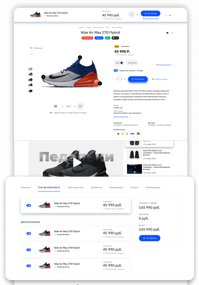 Весь необходимый современному интернет-магазину функционал и последние «фишки» «Битрикса» уже включены.